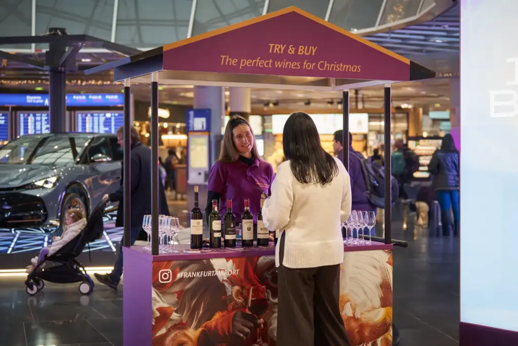 Am Frankfurter Flughafen, hinter der Sicherheitskontrolle, realisieren wir vielfältige Retail-Aktivierungen, Sonderaktionen sowie Miles & More Kampagnen. Unsere Promoterinnen und Promoter unterstützen unter anderem bei Tasting-Aktionen, Glücksrad-Promotions, Goodie- und Flyerverteilungen im Duty Free, als Maskottchen „Fluggi“ oder bei speziellen Miles & More Maßnahmen. Dabei sorgen sie nicht nur für strahlende Gesichter bei den Passagieren, sondern erzielen auch hervorragende Ergebnisse für die Retail- und Kooperationspartner vor Ort.